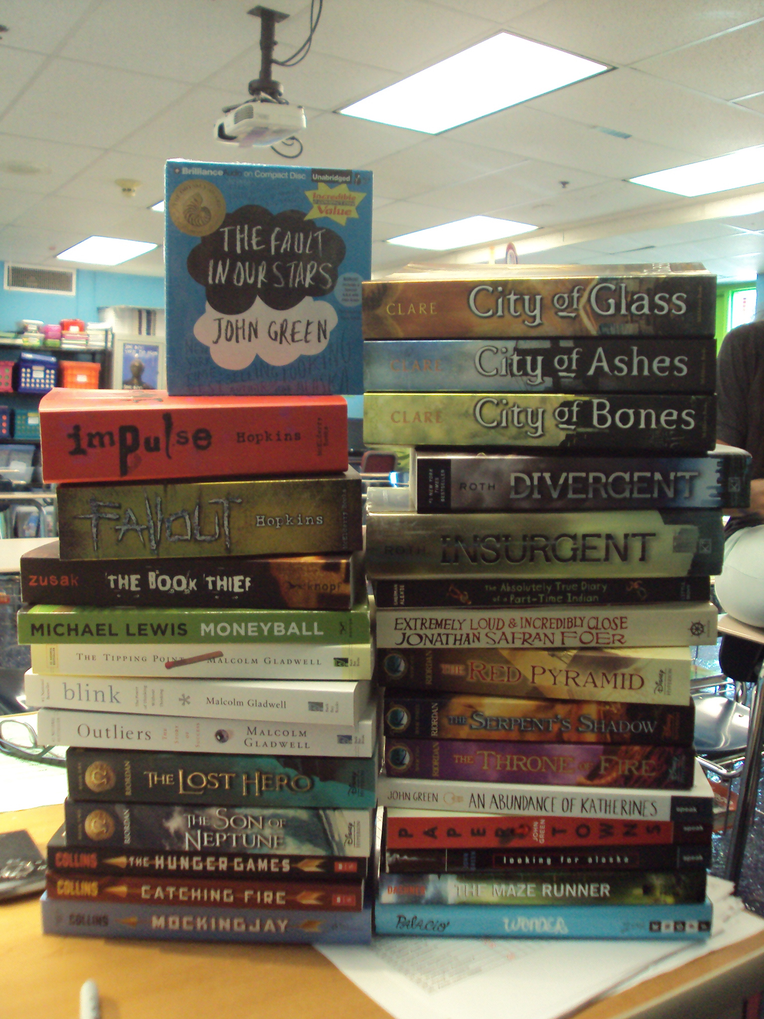 Anyone who is a reading fiend like me knows that books are expensive. Because I haven’t won the lottery yet, I had to seek alternative means for funding my future fabulous library. Great suggestions from Amy and Erika led me to Donors Choose, an amazing charity website that funds classroom projects for teachers. Writing grants on this website has netted me over $1,500 worth of books of my choice! I also had great success with Half Price Books, who donated hundreds of young adult and teen novels to my classroom. Lastly, I’ve tapped an unusual resource–local businesses. Large companies like Target, Sam’s Club, and Kroger have a budget they can only use for donations, and anything they give is tax deductible. I wrote letters to these businesses explaining my needs, and they have donated gift cards each month, netting me a total of $450 in books. All of this grant/letter/request-writing has paid off, and I’ve been able to build a large, dynamic library.