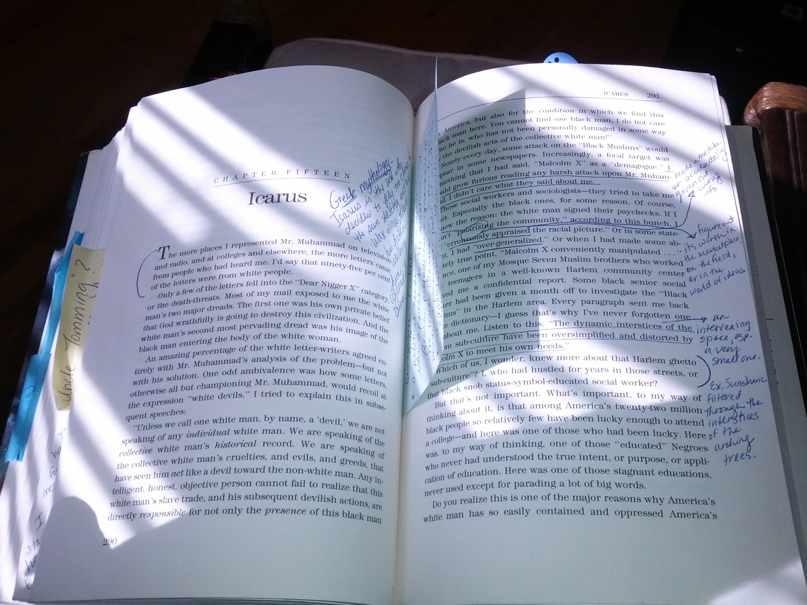 X followed me to class that day, in many regards. As I put my chosen piece of literature on the table, a ‘huh’ surfaced from this female student. I opened to the chapter titled Icarus.