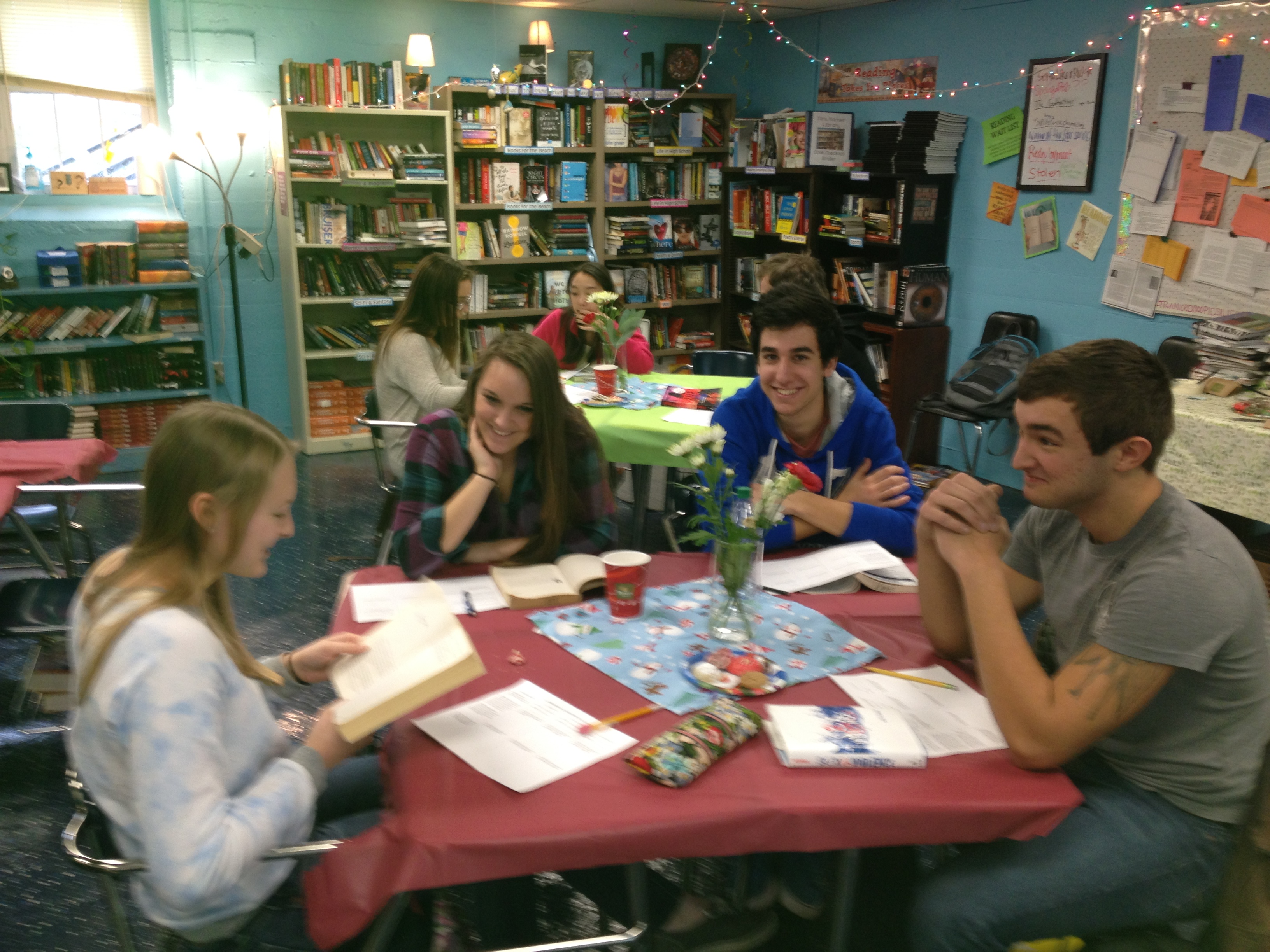 Students chat during the ‘Book Bistro’
