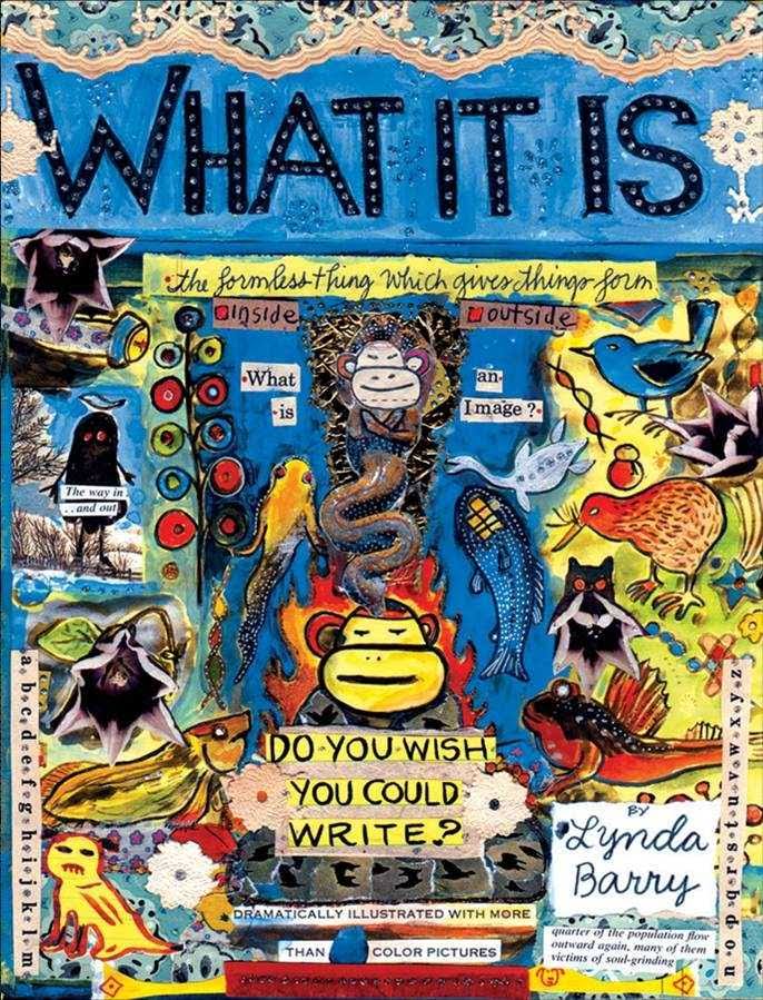 Lynda Barry’s works are phenomenal. I suggest you hop onto her website to take a look at her thinking, pedagogy, and resources…and to also enjoy an interactive look inside her books. (Some pictured here.)