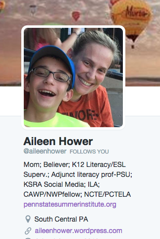 We are excited Aileen Hower will facilitate #poetrychat tomorrow. And we love how our PLN supports us, inspires us, and give us room to grow — we met Aileen through Twitter. Follow her @aileenhower
