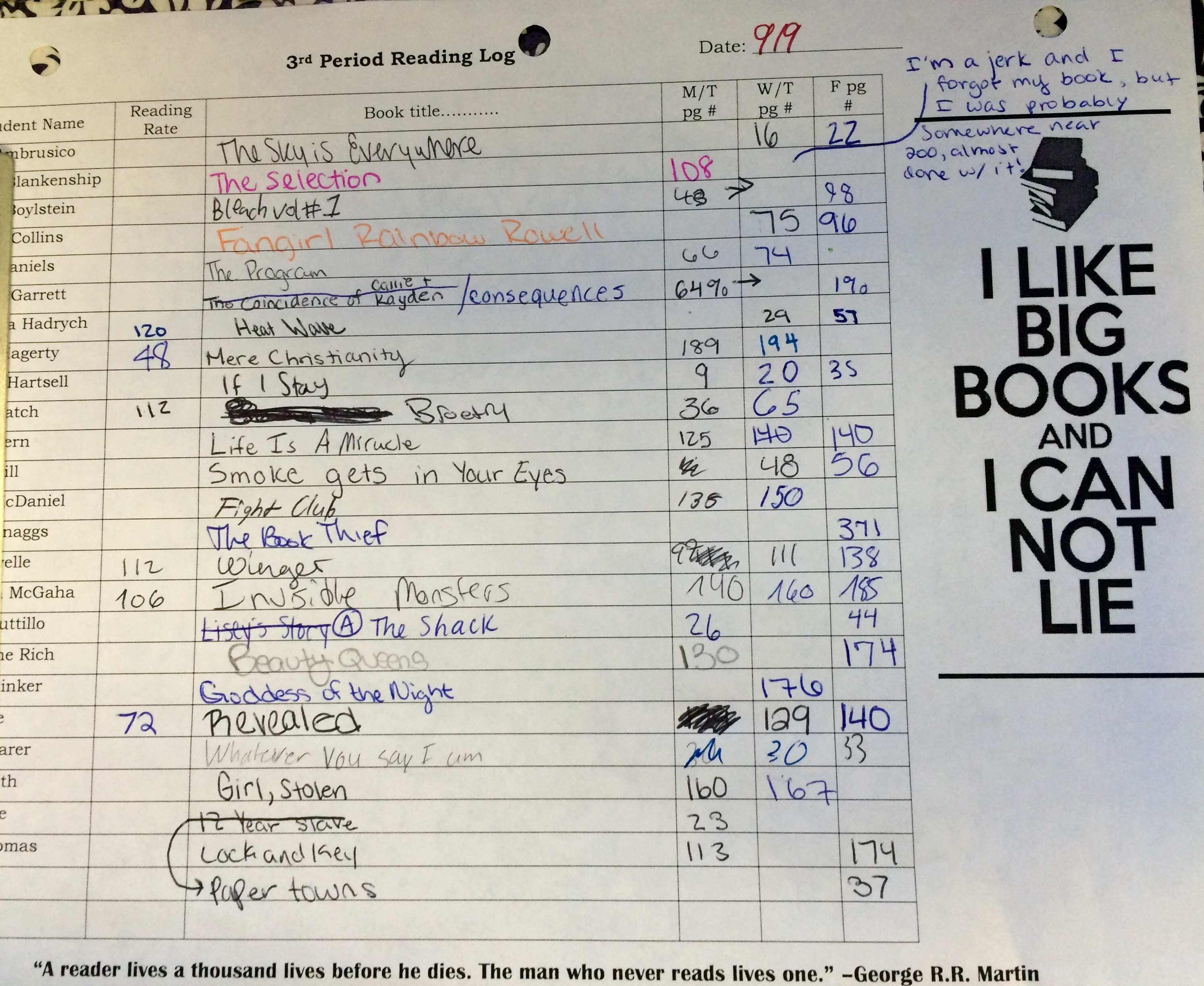 Sheepish grins, embarrassed blushes, and nervous giggles follow. I know I need to give my students some tangible reminder of why they need to be reading two hours per week.