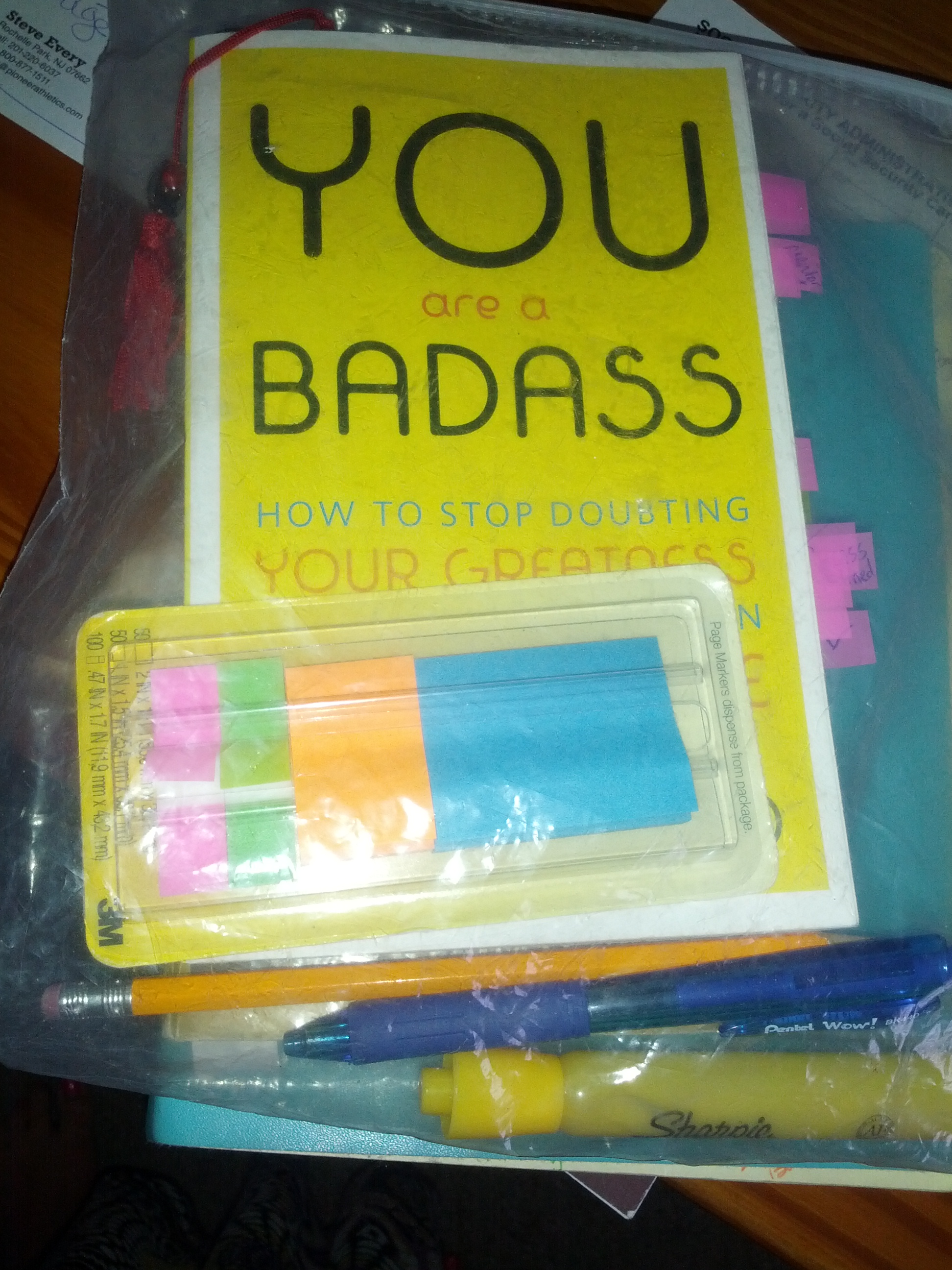 IMG_20140812_124058You are a Baddass: How to Stop Doubting Your Greatness and Start Living an Awesome Life by Jen Sincero has found its way into my Survival Book Kit and I love it!  I’m just past the first thirty pages, yet I have not stopped laughing.  Yes, out loud.