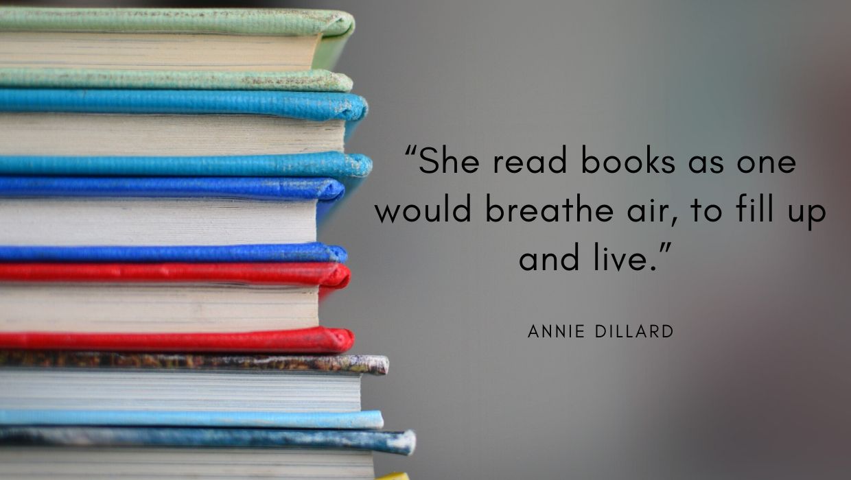 “She read books as one would breathe air, to fill up and live.” – Annie Dillard