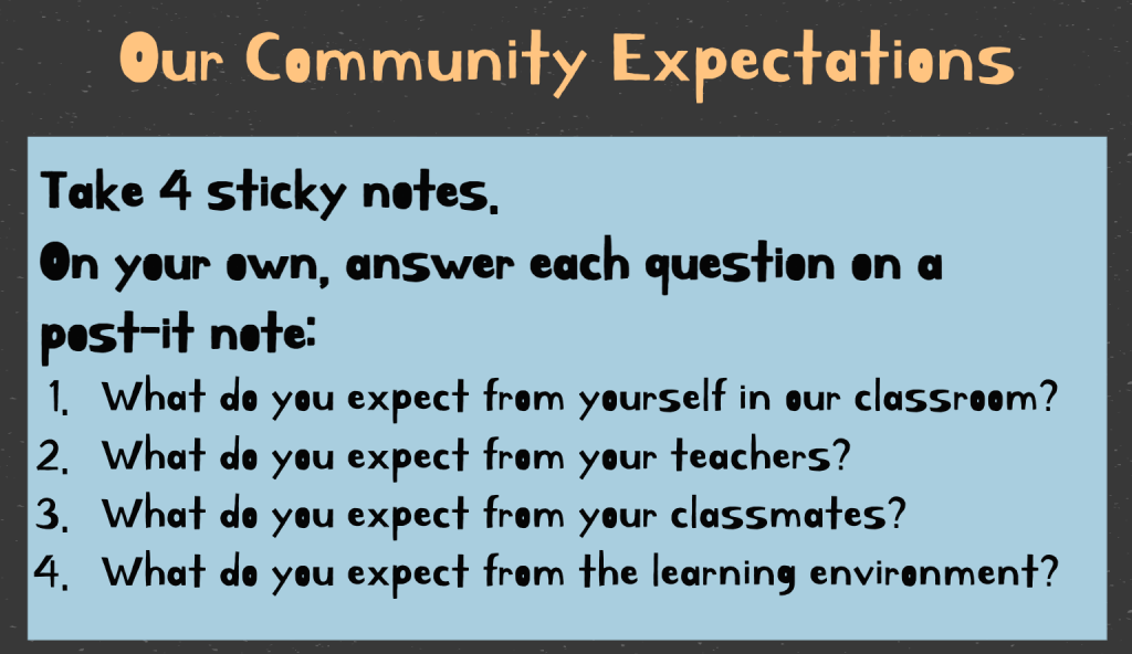Students are out of school sync. For many of our students, they have not set foot in a school in over 18 months. My biggest worry was that they would be muted and quiet coming into the classroom. That was not the case! They haven’t seen many of their friends in person or on screen so they are so excited to be around each other. They LOVE to talk. That being said, they needed some reminders of what is sometimes okay to do/say in school and what might be better outside of school. We have had many conversations in my class already about the different expectations between remote learning and in person learning.