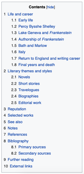 For example, here is a table that shows the organizational chart for Mary Shelley: