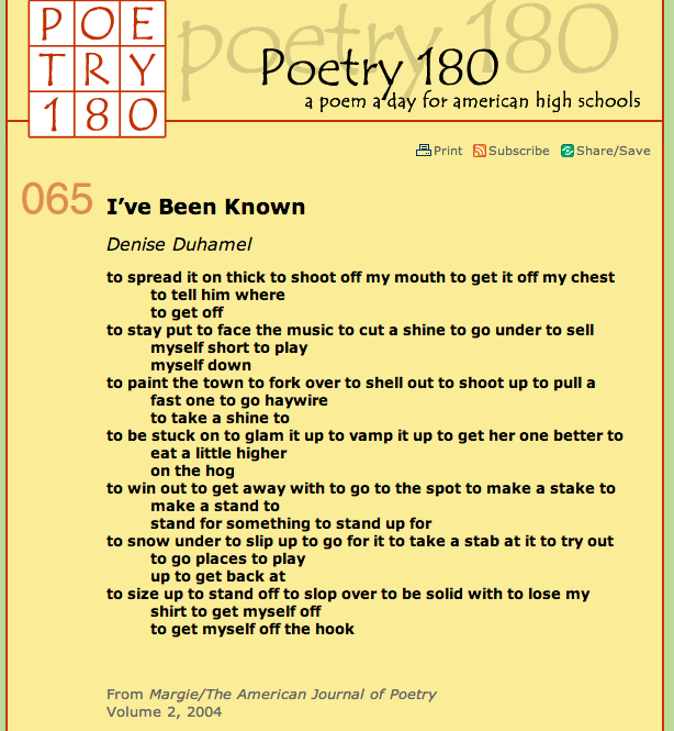 - Accountability throughout the process matters. I was out of the classroom several days when students had writing workshop time to work on their poems. (Someday I’ll tell you about the standards revision work I’ve done with the TEKS Review Committee in Austin this year.) Although my student teacher was there, and my substitute — a former teacher and a sub my students know well — too many of my students clearly wasted the time given them in class to write. They are teenagers after all: give them an inch and they take a mile. And they are major procrastinators. I think they are finally understanding that good writing takes time, but many are still not taking the time to produce good writing.