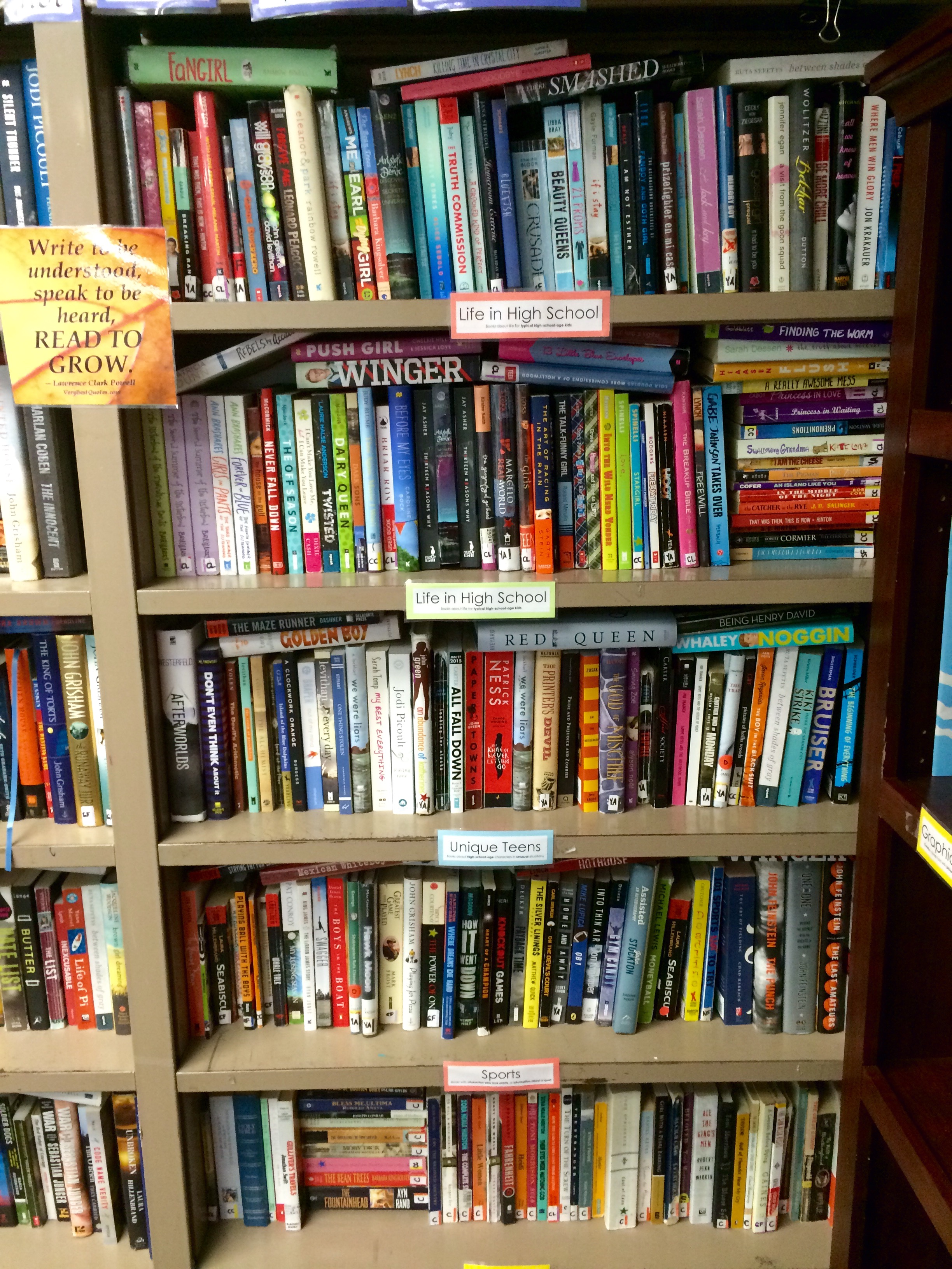 The five bookshelves in my classroom are mostly full of independent reading books–a class set of literature and grammar books, dictionaries, and book club collections provided by my department find their homes on the bottom shelves, but everything else has been a labor of love to build on my own.