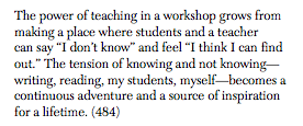 Last week I read this English Journal article from 2000 (timely with Nancie Atwell recently winning that awesome teaching award), and I was reminded of how Atwell talks about the tension in a workshop classroom.